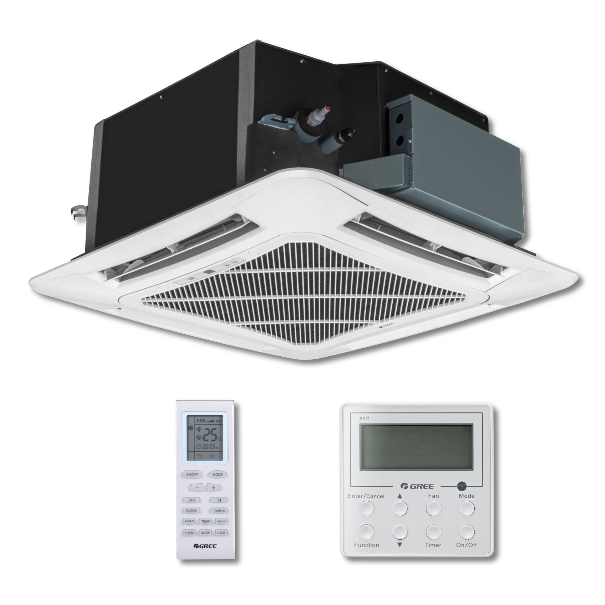 Gree’s Ceiling Cassette will inconspicuously provide quiet performance through innovative design. The Ceiling Cassette is extremely suitable for any room, and can be easily installed in suspended ceilings with only a discreet decorative discharge grille visible. Gree’s fan technology quietly and evenly distributes conditioned air throughout the room, and an internal condensation pump reliably disposes condensate water to a safe location. The Cassette is ideal for light commercial applications which require comfort control in large, open spaces. Each Ceiling Cassette can be operated by an infrared remote control or XK-19 wired tether controller, allowing maximum flexibility for an application.